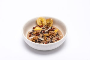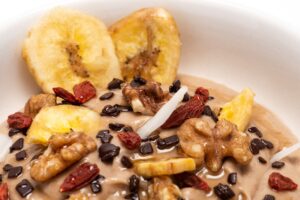 Un piatto cremoso e irresistibile, pronta da gustare in pochi secondi. La dolcezza naturale della banana si unisce al gusto intenso del cioccolato e alla ricchezza del burro di arachidi, per un equilibrio perfetto tra energia e piacere.